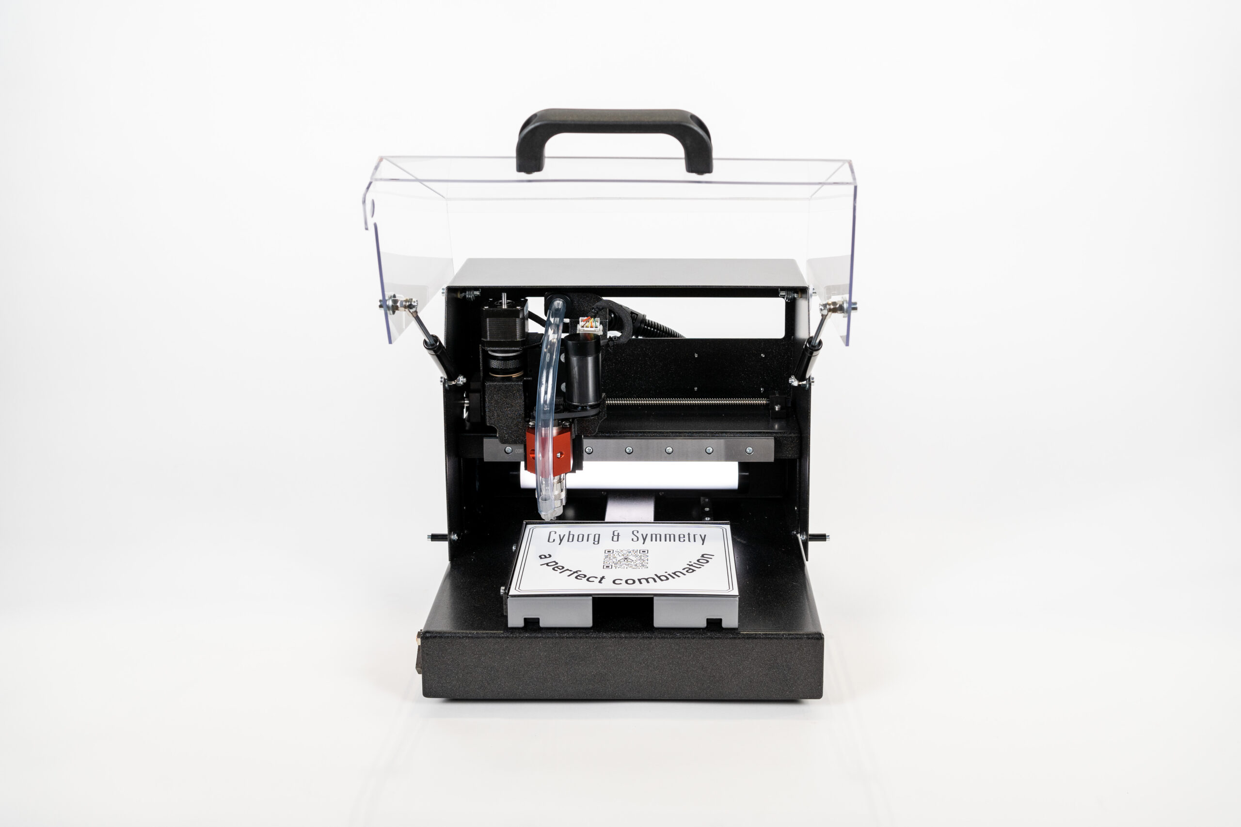 La Cyborg X-200 est une machine de gravure compacte et puissante qui réalise sans effort les plus belles gravures grâce à sa broche robuste. Cette machine est spécialement conçue pour graver des plaques en plastique, comme le Graflux II, et des métaux non ferreux. De plus, il est également possible de graver des plaques signalétiques en acier inoxydable avec un diamant. Cela fait du Cyborg X-200 la machine idéale pour divers secteurs et applications.